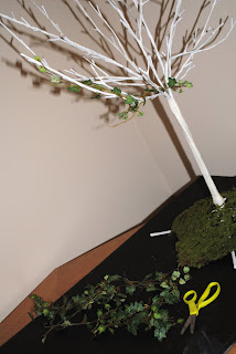 I bought a strand of fake ivy, cut it and wound pieces around the branches.