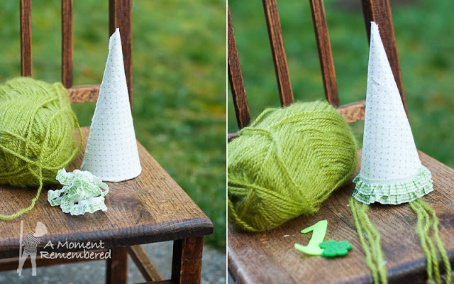 Have no fear… our dear friend and Itsy Belle Contributor Angela of A Moment Remembered is sharing her simple NO-SEW tutorial on how to create a darling fabric party hat on the cheap!